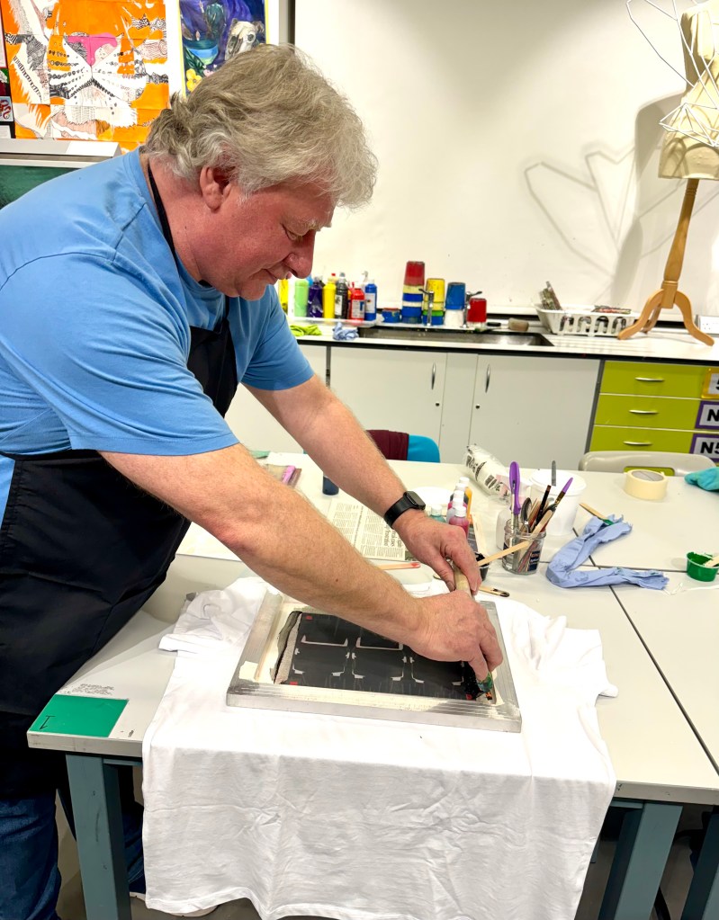 Join us as we dive into the colorful world of textile design, exploring basic techniques with paper stencils to create vibrant one, two, and three-color prints. Enjoy “print what you like” sessions where you can work on projects like t-shirts, jumpers, jackets and cushion covers.